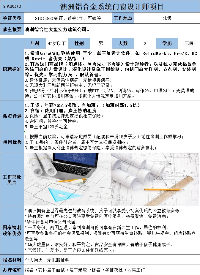 赴澳大利亞(北領)- 鋁合金系統門窗設計師