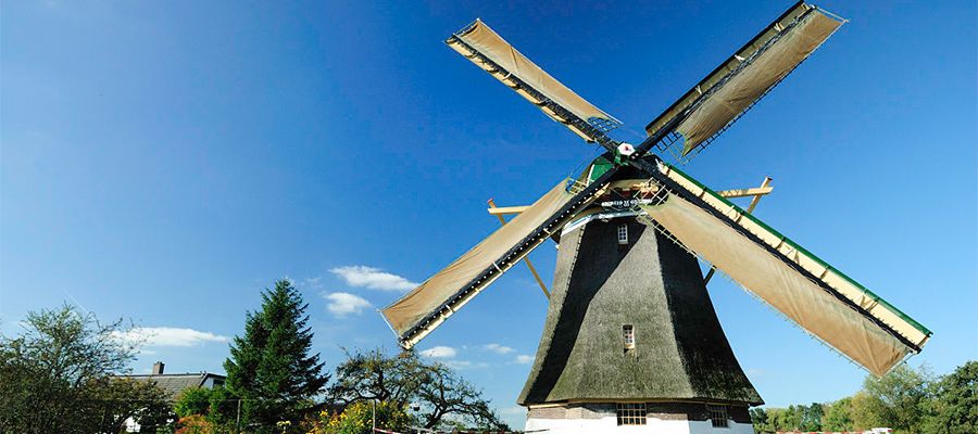 最早從德國引進。開始時僅用于磨粉之類。到了十六七世紀,風車對荷蘭的經濟有著特別重大的意義。當時,荷蘭在世界的商業中,占首要地位,各種原料從各路水道運往風車加工,其中包括:北歐各國和波羅的海沿岸各國的木材,德國的大麻子和亞麻子,印度和東南亞的肉桂和胡椒。在荷蘭的大港--鹿特丹和阿姆斯特丹的近郊,有很多風車的磨坊、鋸木廠和造紙廠。 隨著荷蘭人民圍海造陸工程的大規模開展,風車在這項艱巨的工程中發揮了巨大的作用。首先是給風車配上活動的頂篷,他們又把風車的頂篷安裝在滾輪上。這種風車,被稱為荷蘭式風車。
