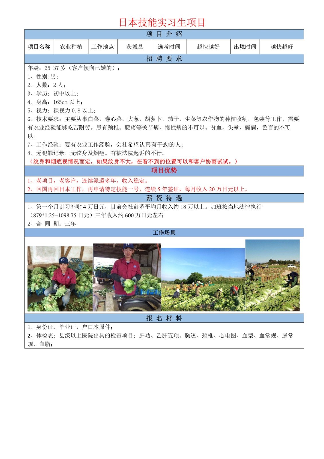 主要從事白菜,卷心菜,大蔥,胡蘿卜,茄子,生菜等農(nóng)作物的種植收割,包裝等工作,需要有農(nóng)業(yè)經(jīng)驗(yàn)?zāi)軌虺钥嗄蛣凇?/a>