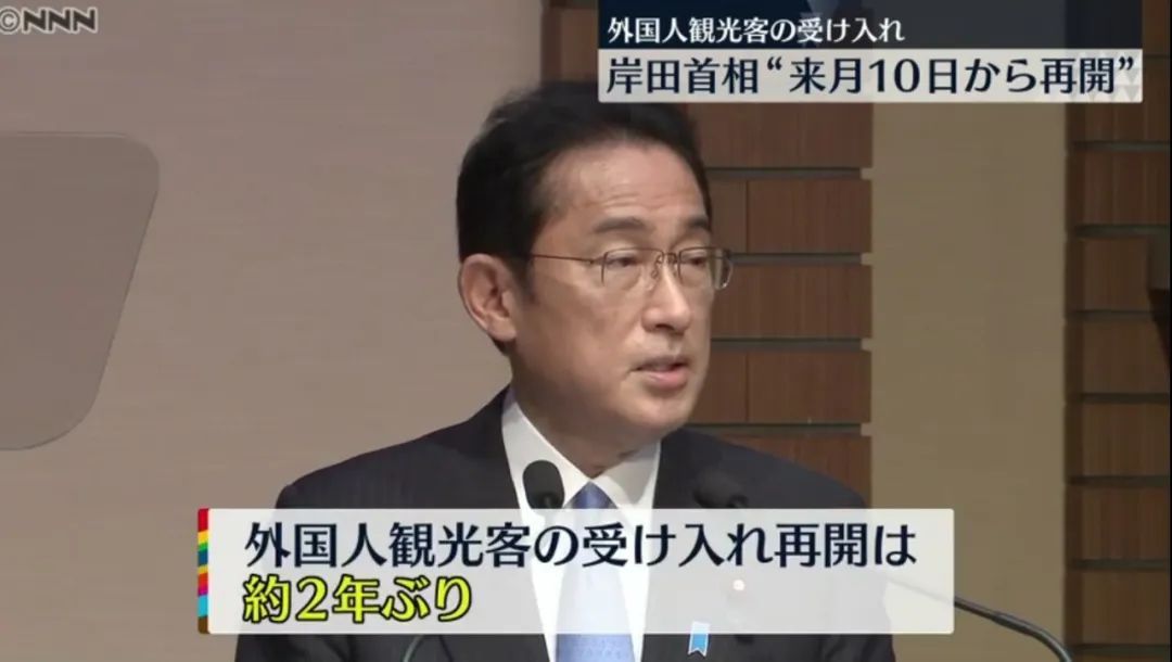 26日晚,日本首相岸田文雄正式對外宣布:從下個月的10號開始,正式打開國門,迎接外國觀光客。