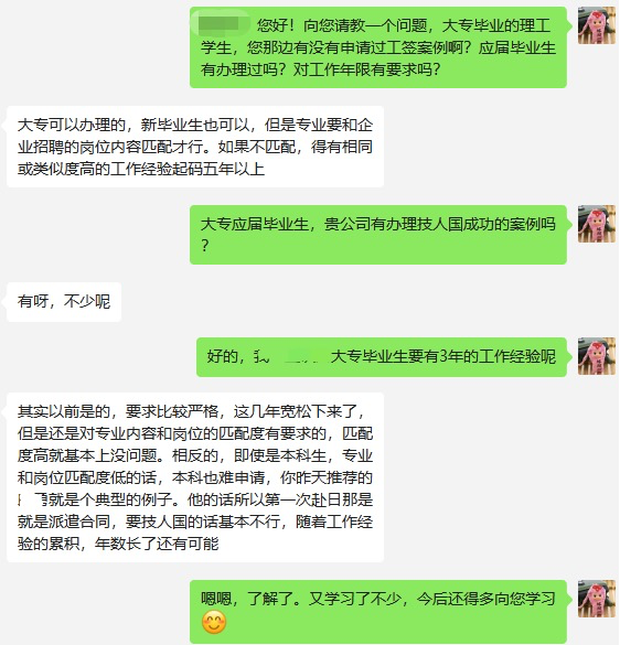 在本月的政策交流會中,向日本地接方溝通的過程中了解到:大學??飘厴I生,現在只要專業和工作內容匹配度高,即便應屆生,也是可以直接申請工作簽證。