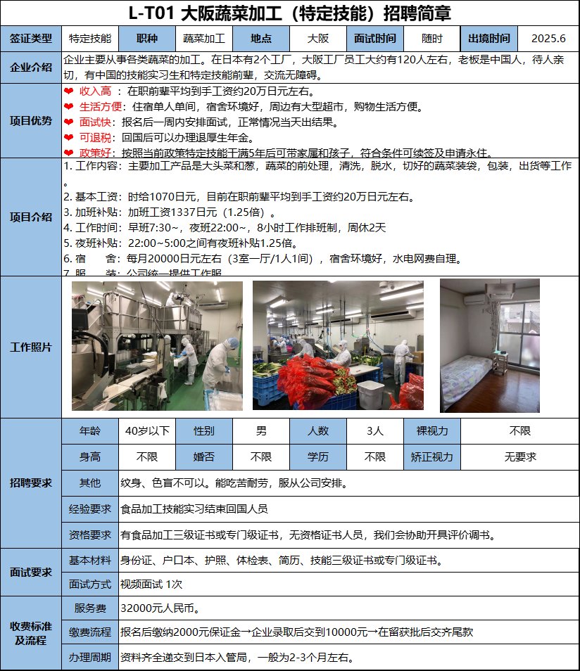 主要負責前廳服務和后廚幫廚(煮面,洗菜、配菜、清洗餐具)。免費提供工作餐,有獎金,有漲薪機會。回國后可退厚生年金。符合條件者干滿2年后可轉特定技能2號,可帶家屬,可申請永住。