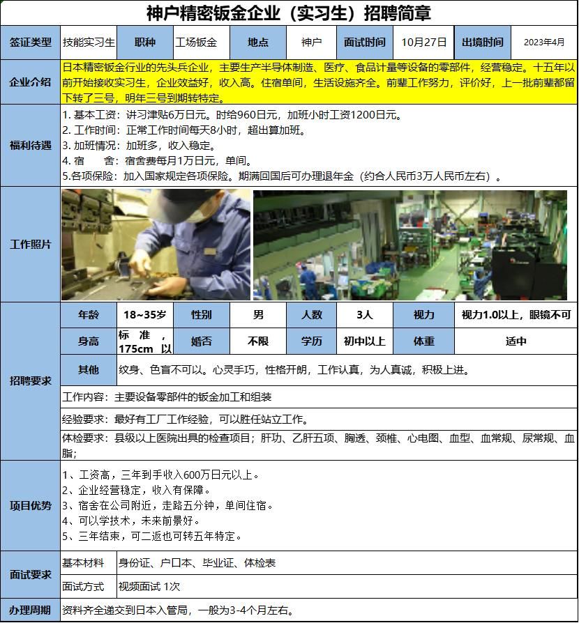 具體工作主要在物流會社做物品分揀,要求身體健壯。