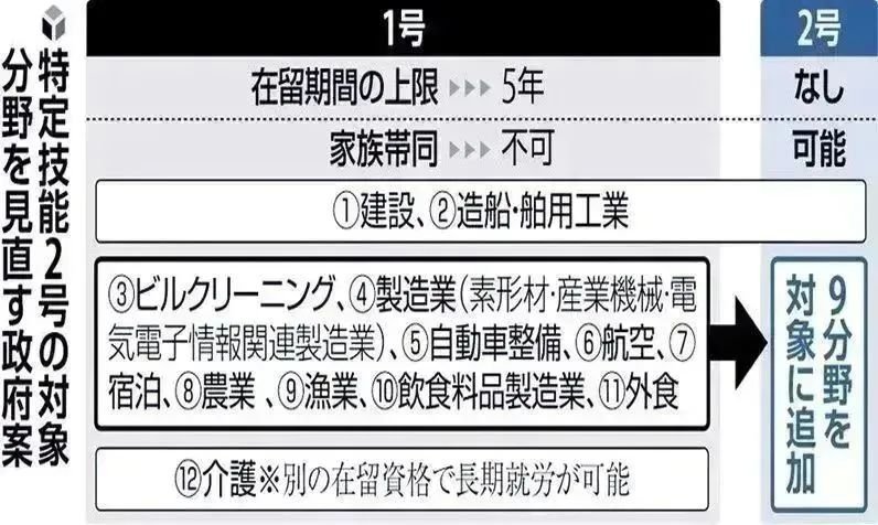 不僅沒有任何學歷要求,只要通過技能測試即可轉為特定技能2號,不僅允許攜帶配偶和孩子,工作生活滿10年,還可以申請日本永住簽證。
