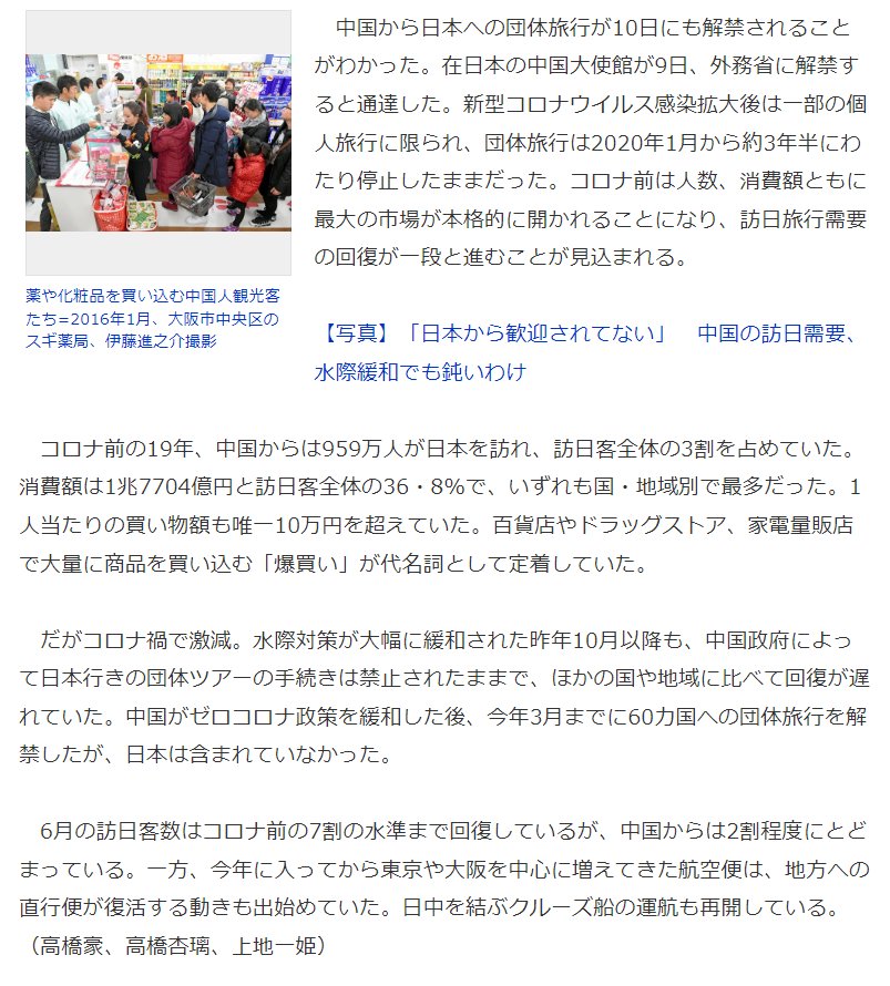 赴日團體旅游簽解禁:疫情前赴日外國人中國占30%的市場份額,今年6月為止,在還沒有完全解封團體旅游簽的情況下,赴日外國人中,中國人已經占據20%。