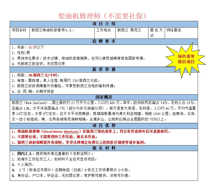 要求45歲以下,男性,會熟練完成噴涂油漆工作,日本回國的優先。稅前27.76新西蘭元/小時。