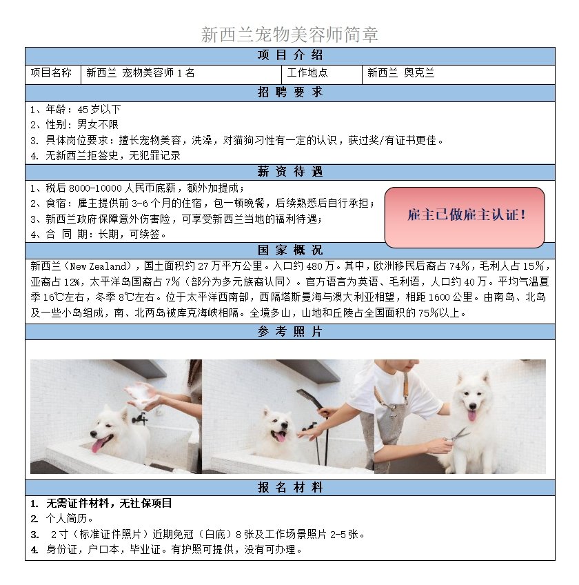 要求45歲以下,男性,會熟練完成噴涂油漆工作,日本回國的優先。稅前27.76新西蘭元/小時。