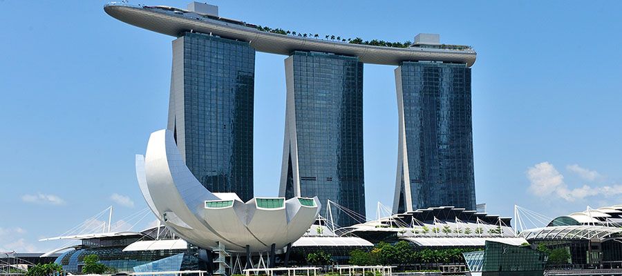 由視覺建筑大師摩西·薩夫迪 (Moshe Safdie) 設計的空中花園懸浮在濱海灣金沙酒店三座高樓之巔。