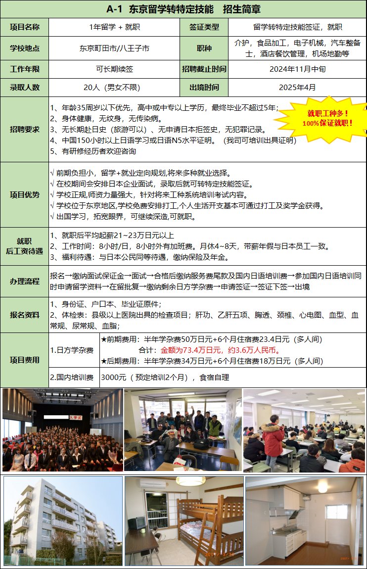 東京半年留學轉特定技能,半年后可就職!就職工種多!100%保證就職!