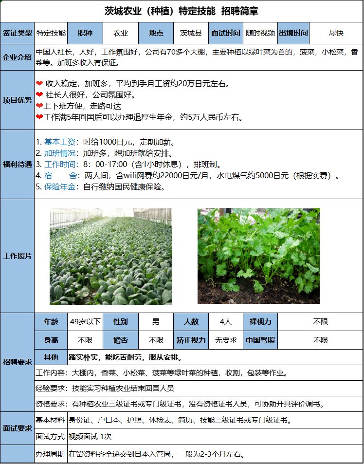 主要養雞、喂料、打掃雞舍等,平均到手工資18萬日元左右,公司報銷5萬日元赴日機票,據個人表現有獎金,宿舍費用低。