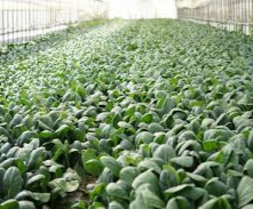 大棚內,香菜、小松菜、菠菜等綠葉菜的種植,收割,包裝等作業。