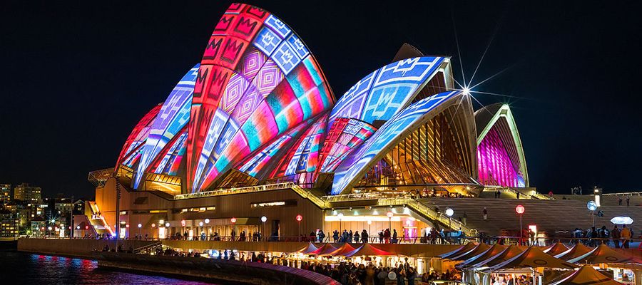 悉尼歌劇院的外型猶如即將乘風出海的白色風帆,與周圍景色相映成趣。悉尼歌劇院是從20世紀50年代開始構思興建,1955年起公開徵求世界各地的設計作品,至1956年共有32個國家233個作品參選,後來丹麥建筑師約恩·伍重的設計屏雀中選,建設從1959年3月開始,直至1973年10月竣工,斥資1億零200萬澳大利亞元完成建造,為了籌措經費,除了募集基金外,澳大利亞政府還曾於1959年發行悉尼歌劇院彩券。