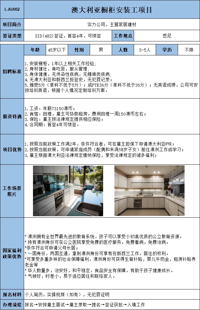 赴澳大利亞(悉尼)- 櫥柜安裝工