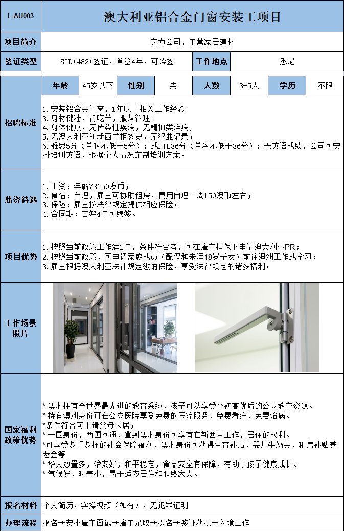 赴澳大利亞(悉尼)- 鋁合金門窗安裝工