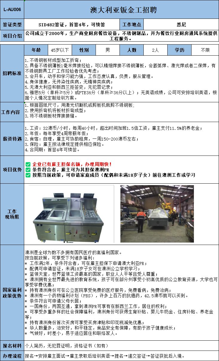 赴澳大利亞(墨爾本/布里斯班)- 裝配工
