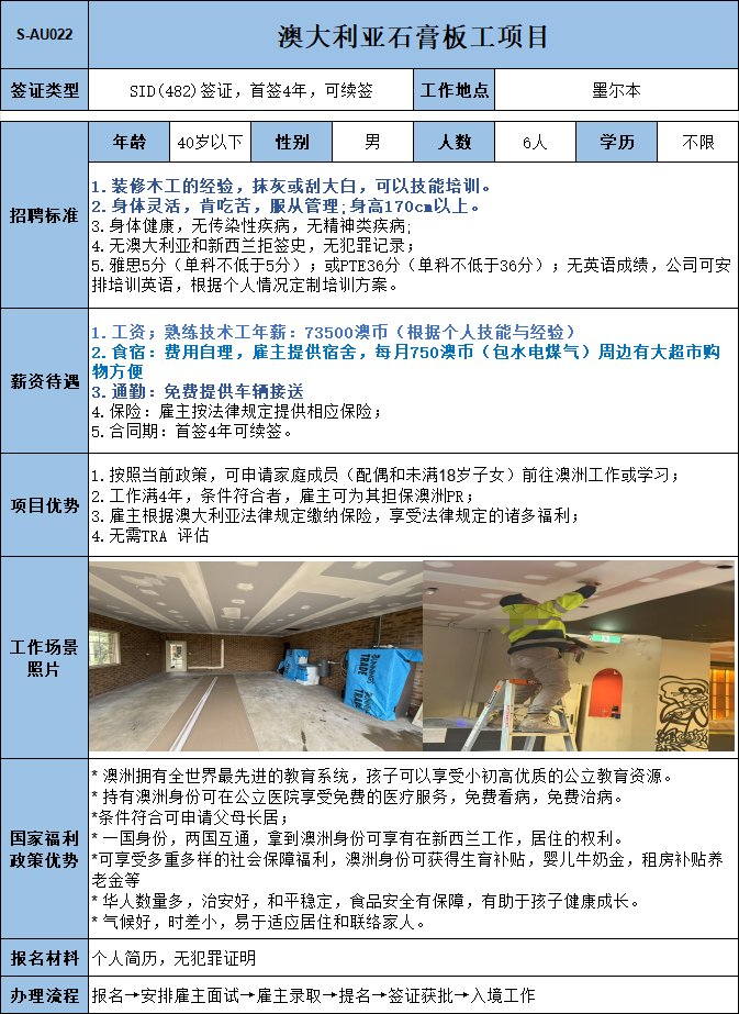 實力公司,主營家居建材,主要負責鋪設瓷磚、地板,1年以上相關工作經驗;年薪73150澳幣,多勞多得,工資漲薪潛力極大