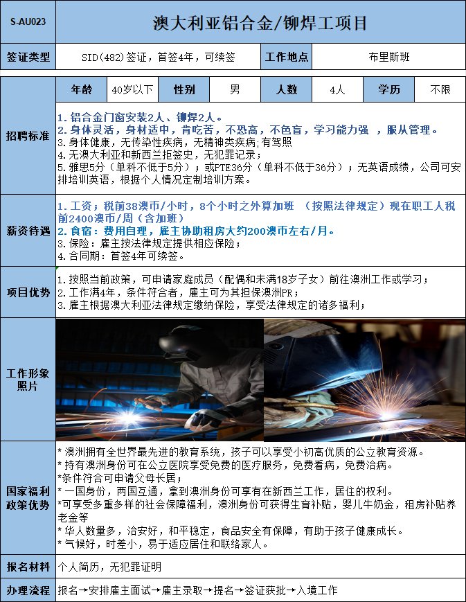 赴澳大利亞(墨爾本/布里斯班)- 焊工/氬弧焊工