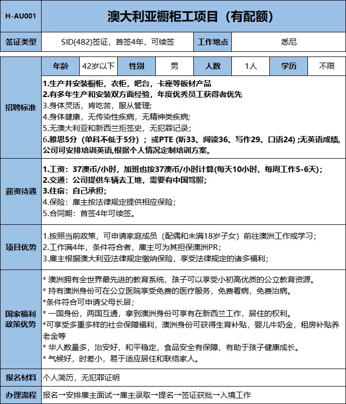要求安裝櫥柜,1年以上相關工作經驗;年薪73150澳幣;