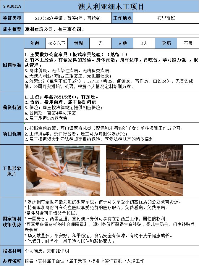 實力公司,主營家居建材,主要負責鋪設瓷磚、地板,1年以上相關工作經驗;年薪73150澳幣,多勞多得,工資漲薪潛力極大