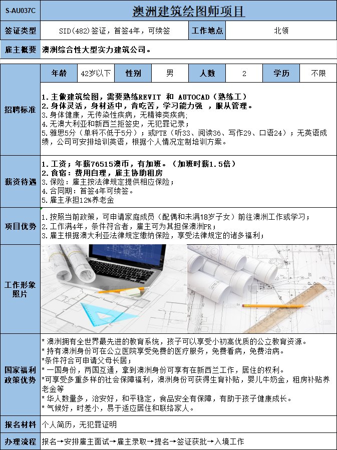 噴涂工,有相關工作經驗者優先,無經驗者也可;熟練工年薪76515澳幣;雇主支付12%養老保險.